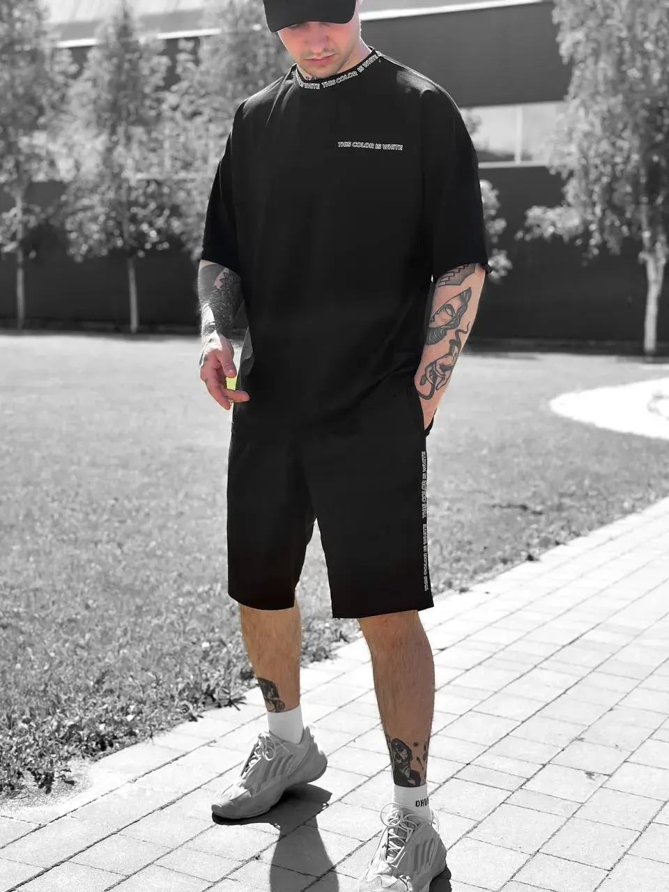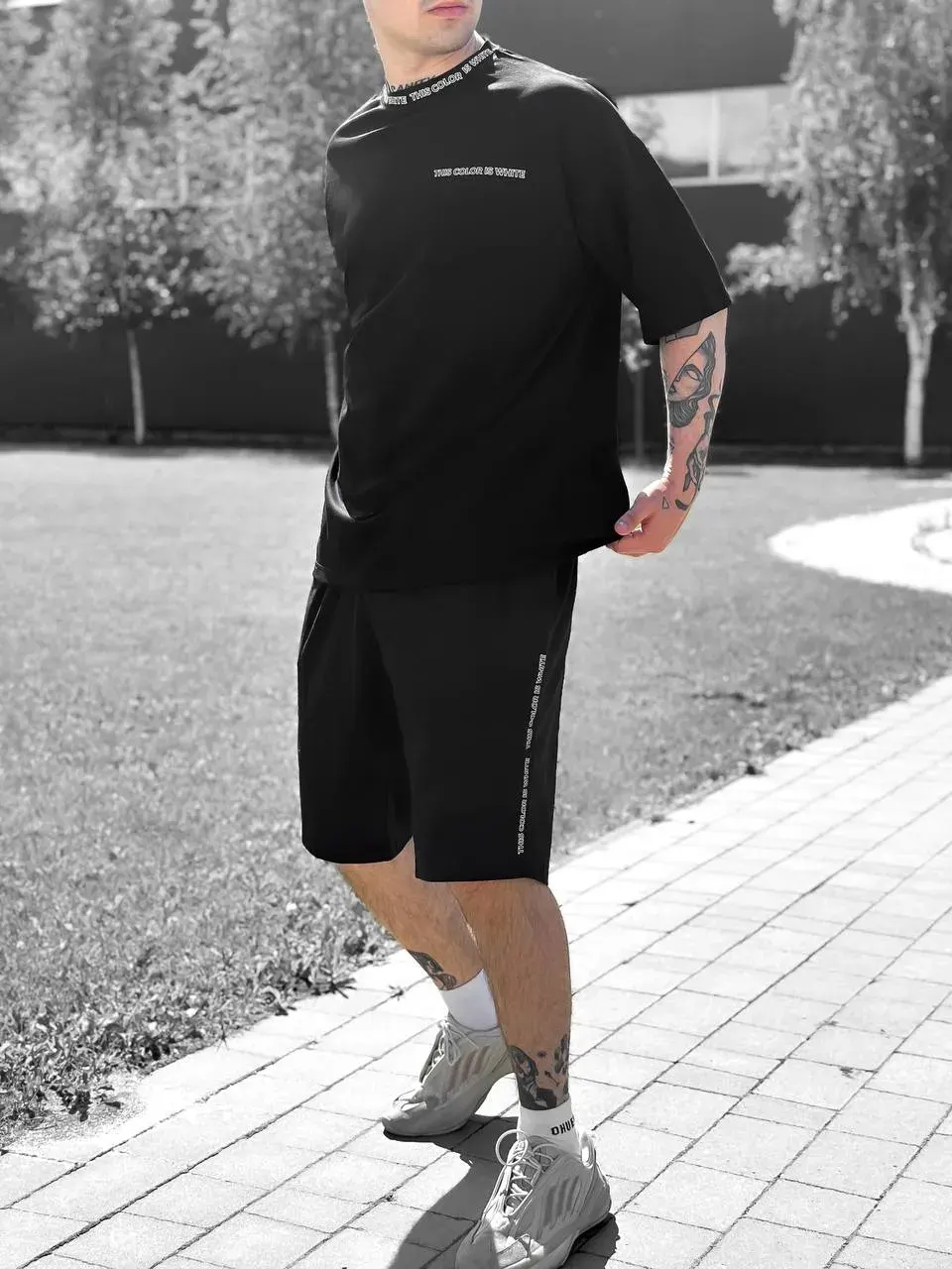Костюм «Urban Move» — це стильний комплект футболки та шортів із поєднанням двонитки й куліру, який пропонує ідеальний баланс між комфортом та сучасним дизайном. Вільний крій і приємна на дотик тканина дозволяють вільно рухатися, а універсальний стиль пасуватиме як для прогулянок містом, так і для більш активного відпочинку. Вироблений в Україні з увагою до якості.