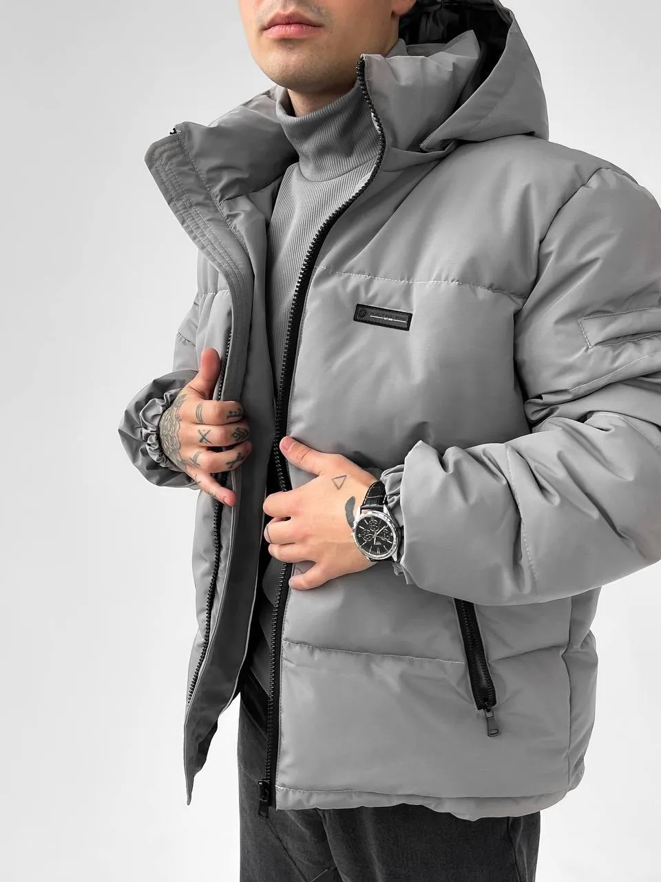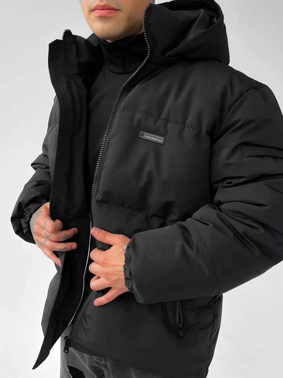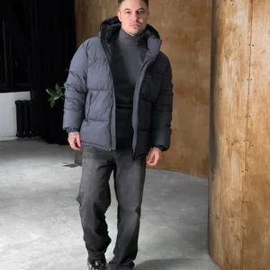 Чоловіча зимова куртка з утеплювачем еко-пух, ідеальна для температур від 0 до -25 градусів. М’який матеріал плащівка забезпечує комфорт і надійний захист від вітру та холоду. Куртка оснащена боковими та внутрішніми кишенями, потаємним капюшоном та резинками на рукавах. Світловідбиваюча стрічка на чорному кольорі додає безпеки в темний час доби.